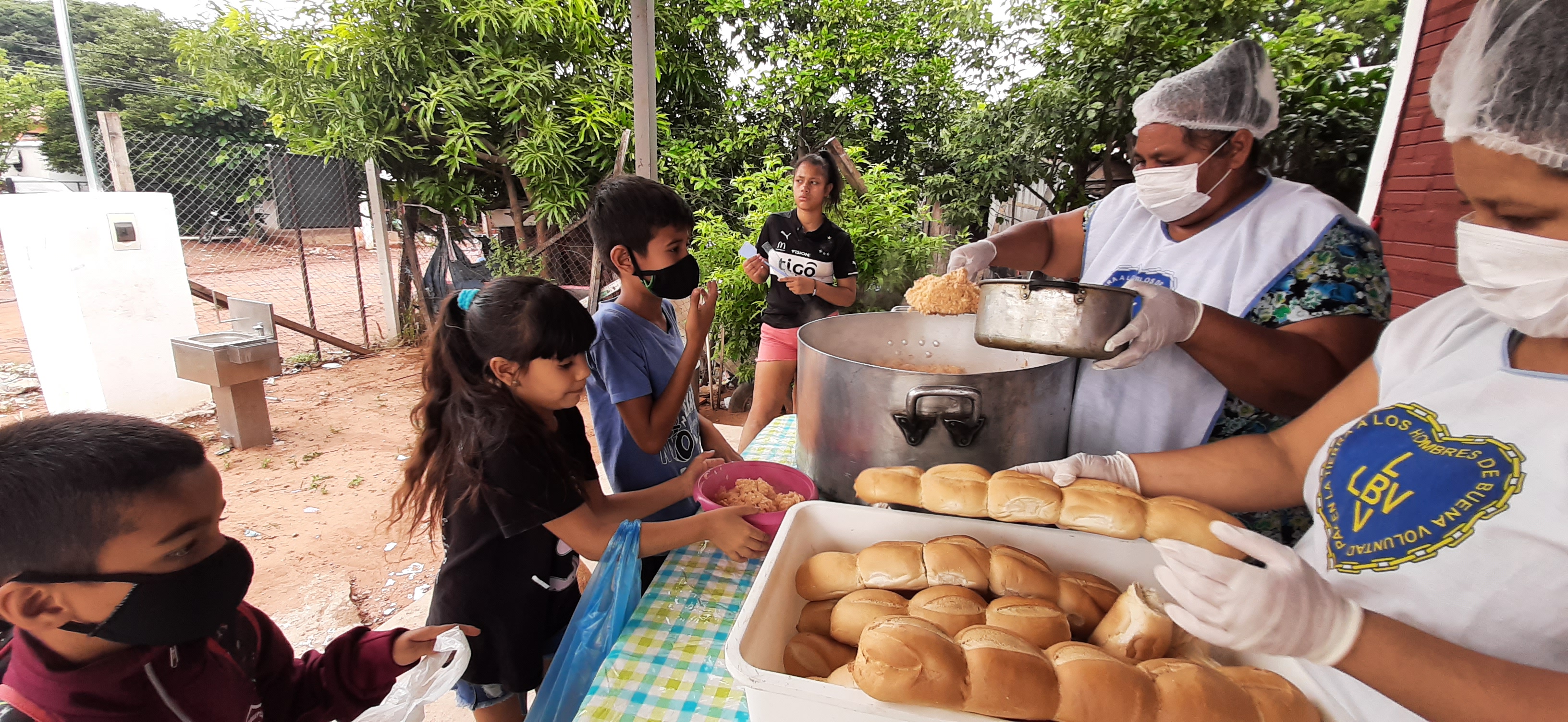 El programa Ronda de la Caridad que realiza la LBV en las comunidades, entrega comida caliente con pan en el