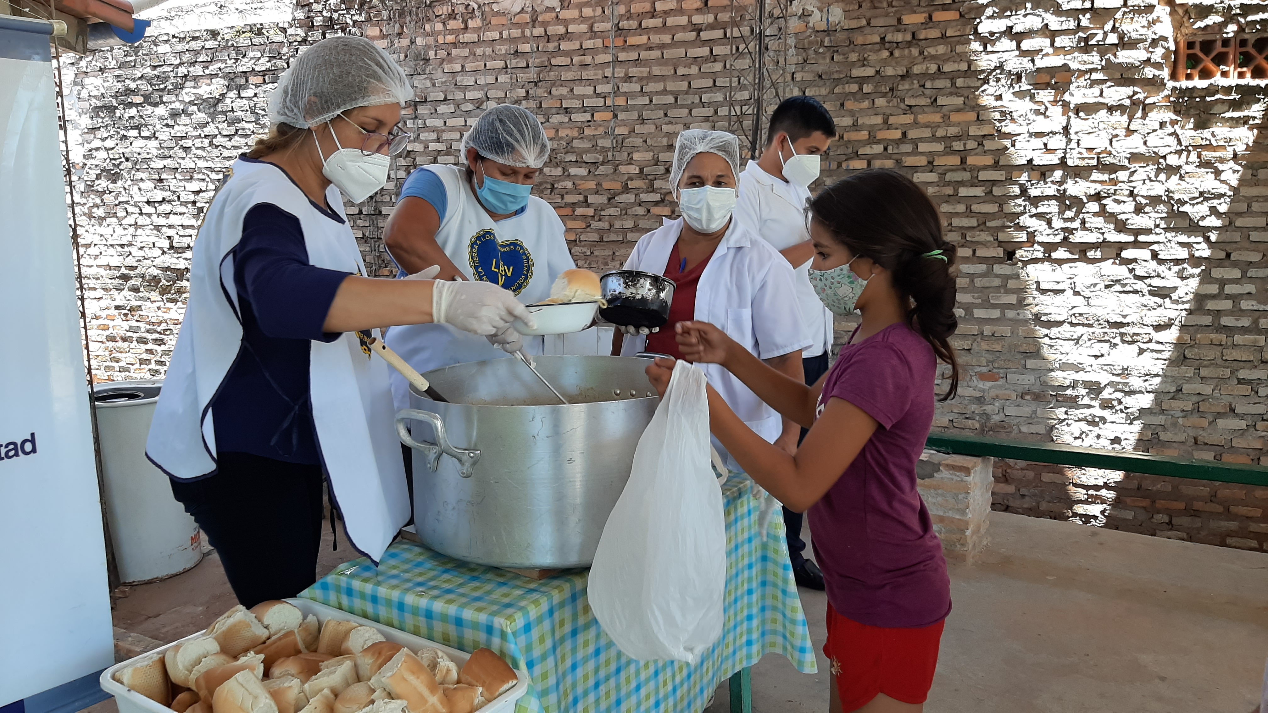 Semanalmente la institución distribuye 600 platos de comida calentita con pan garantizando el almuerzo a las familias.