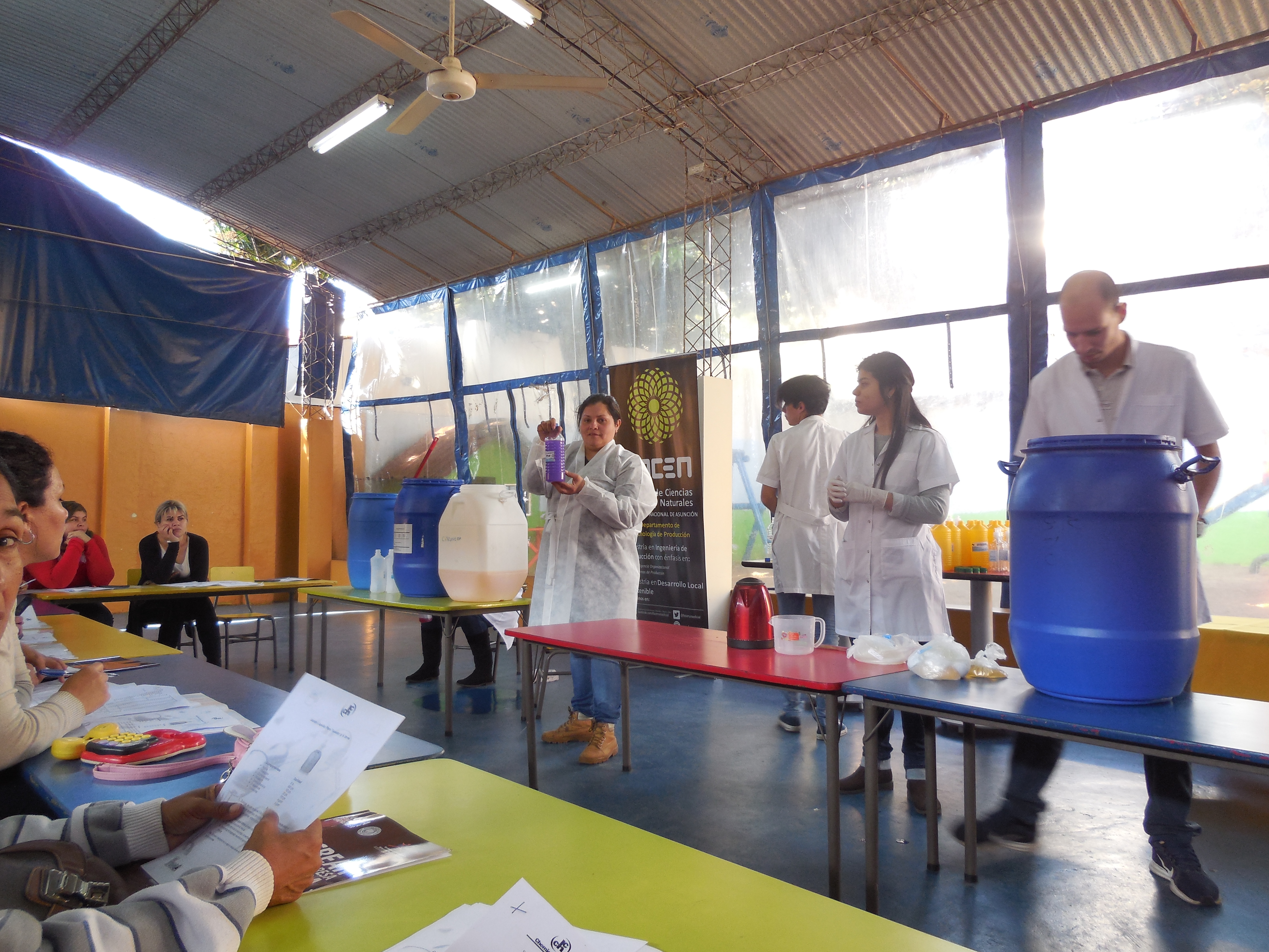 Esta actividad contó con el apoyo de Facultad de Ciencias Exactas y Naturales de la Universidad Nacional de Asunción. Las familias beneficiadas aprendieron a hacer, lavandina, detergente y desodorante de ambiente.